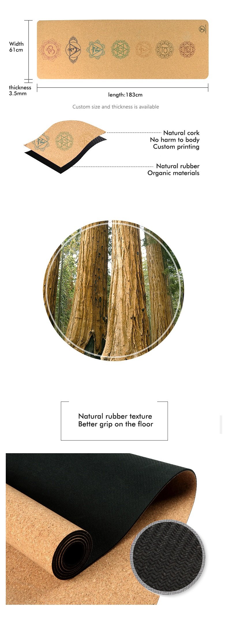 - Materials: Cork surface,natural rubber base